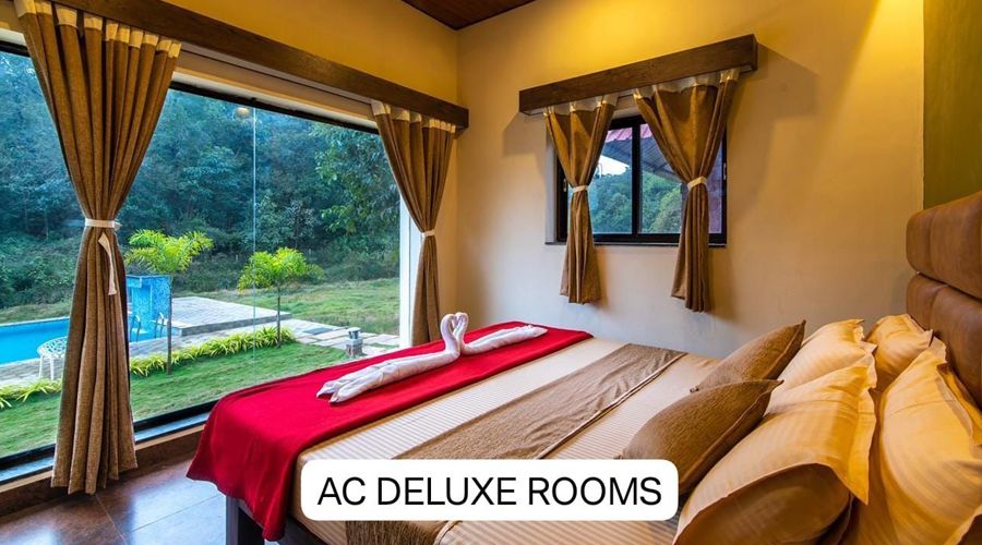 Luxury Swimming Pool Resort is located just 3 km away from Dandeli and resorts is surrounded by scenic beauty of nature. Resort offers Deluxe Cottages, Pool View Rooms and Camping Tents. Best suited for Students, Families and Couples.